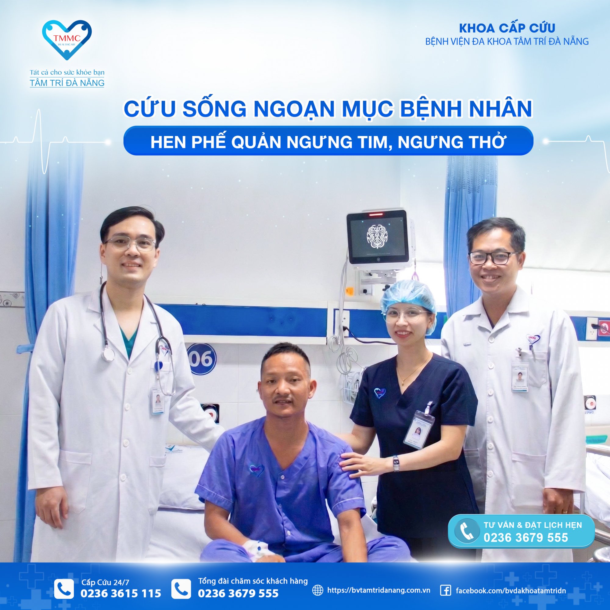 BS.CKI Dương Bảo Thạnh – Trưởng Khoa Cấp cứu chia sẻ: “Khi tiếp nhận, bệnh nhân đã ngưng tuần hoàn, phổi co thắt rất nặng nên gần như không thể thông khí. Tình trạng lúc đó cực kỳ nguy kịch, nhưng ekip xác định phải tận dụng từng giây để giành lại sự sống cho bệnh nhân.”