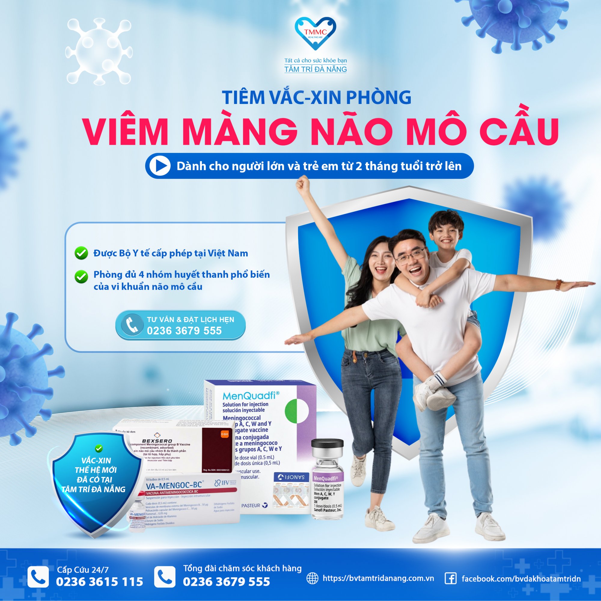 Tiêm chủng là biện pháp giúp phòng ngừa hiệu quả các nhóm vi khuẩn não mô cầu phổ biến. Hiện tại, BVĐK Tâm Trí Đà Nẵng triển khai các loại vaccine: